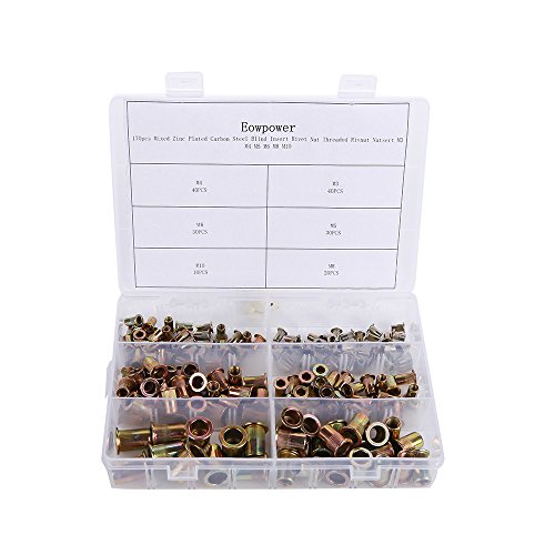 Eowpower 170pcs Mixed Zinc Plated Carbon Steel Blind Insert Rivet Nut Threaded Rivnut Nutsert M3 M4 M5 M6 M8 M10