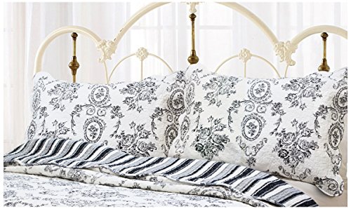Cozy Line Home Fashions French Medallion Sized Shams, Set of 2, King, Black
