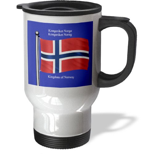 3dRose Flag of Norway, Kingdom of Norway in English and Norwegian, Stainless Steel Travel Mug, 14-Oz