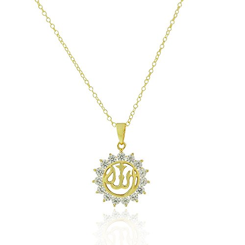 -. Title : 925 Sterling Silver White Clear CZ Muslim Arabic Allah Pendant Necklace, 18"