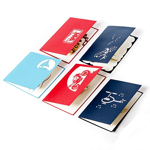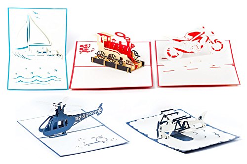 -. Feature : Set of 5 assorted cards included with envelopes. Sizes from 4.7 x 4.7 to 4 x 6 inch (not expanded) / Delight your Kids, Nephew, Niece, Brother, Sister, Son, Daughter, Husband, Wife, Mother or Father / Suitable for all Occasions- Happy Birthdays, Christmas, Invitations, Thank You, Gifts. / Motorcycle, Sailboat, Airplane, Helicopter, Train. 100% guarantee- full refund if not satisfied / ClICK ON "BY CHARM CARDS" above for more amazing pop up gift card packs
