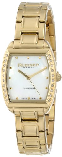Rudiger Women's R2600-02-009 Bonn Gold Ion-Plated Coated Stainless Steel Tonneau Mother-Of-Pearl Diamond Watch
