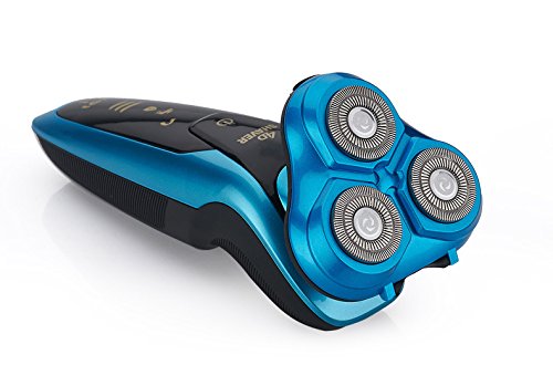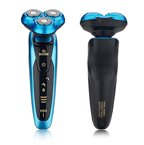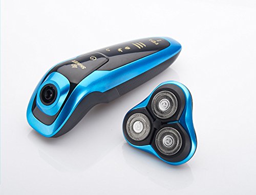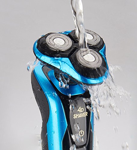 Men's Waterproof Electric Shavers, Washable IPX7 4D Wet and Dry Razor Triple Rotary Shaver with Smart Touch Floating Heads (Blue)