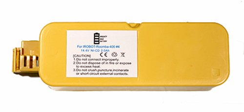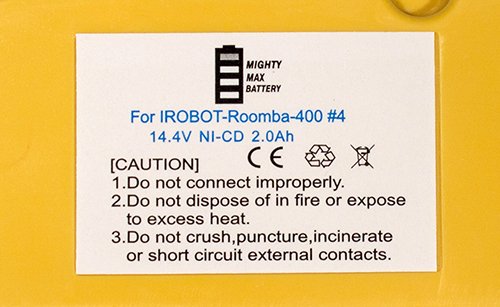 -. Binding : Kitchen -. Brand : Mighty Max Battery -. Feature : This battery is fully compatible with all Roomba FloorVac models / 1 Year Warranty / 14.4V 2.0AH NiCD Battery / Compatible with iRobot Models: iRobot Discovery Series iRobot Dirt Dog Models / Mighty Max batteries are made with the highest quality materials. -. Label : Mighty Max Battery -. Manufacturer : Mighty Max Battery -. MPN : ML-RMB40015 -. PackageQuantity : 1 -. PartNumber : ML-RMB40015 -. ProductGroup : Home -. ProductTypeName : HOME -. Publisher : Mighty Max Battery -. Studio : Mighty Max Battery -. Title : 14.4V Vacuum Battery for iRobot Roomba 400 4000 5545 17373 APS - Mighty Max Battery brand product