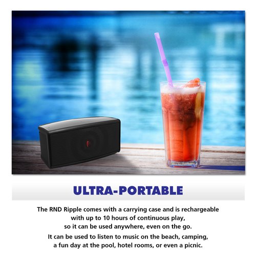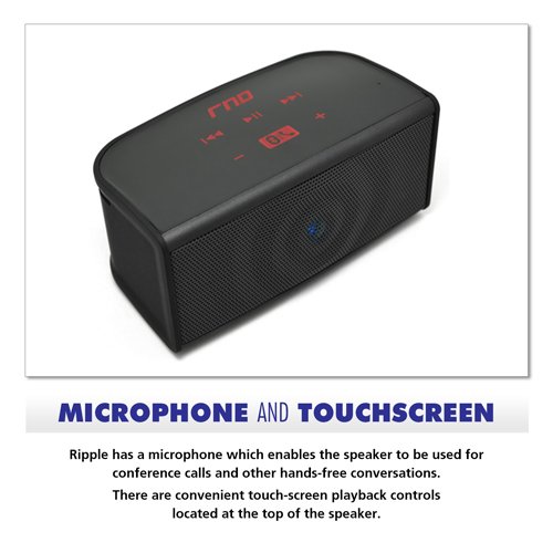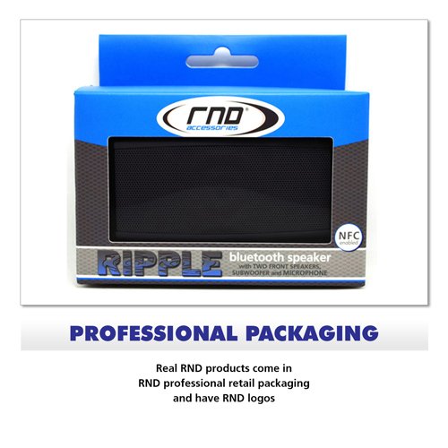 -. Binding : Wireless Phone Accessory -. Brand : RND -. Feature : Premium Wireless Touchscreen Speaker with two speakers a subwoofer and microphone / Bluetooth 2.1 capability up to 30 feet away with NFC (Near Field Communication) capabilities (Frequency Range: 20Hz-20KHz) / Rechargeable battery with 8-10 hours of continuous play perfect to use anywhere! / Compatible With but NOT limited to: Apple iPad 2 | Apple iPad 2 | Apple iPad 4 | Apple iPad 4 | Apple iPad Air 1 | Apple iPad Air 1 | Apple iPhone 5 | Apple iPhone 5 | Apple iPhone 5C | Apple iPhone 5C | Apple iPhone 5S | Apple iPhone 5S | Apple iPhone 6 | Apple iPhone 6 | Apple iPhone 6 Plus | Apple iPhone 6 Plus | HTC One M8 (2014) | HTC One M8 (2014) | LG G3 | LG G3 | Nokia Lumia 1020 | Nokia Lumia 1020 | Nokia Lumia 928 | Nokia Lumia 928 | Samsung Galaxy Note 2 | Samsung / RND Power Solutions products comes in professional retail packaging and offers a 1 year hassle free warranty. 100% Customer Satisfaction is our Goal. PLEASE BE CAREFUL when buying products on Amazon and only buy from trusted sellers. Sellers without authorization may sell an inferior quality product carrying no branding. Examples of some trusted sellers would be RND Power Solutions and Amazon. Authentic RND Power Solutions products will have our branding on the product and packaging. -. Label : RND -. Manufacturer : RND -. PackageQuantity : 1 -. ProductGroup : Wireless -. ProductTypeName : WIRELESS_ACCESSORY -. Publisher : RND -. Studio : RND -. Title : RND Ripple Bluetooth Speaker with two front speakers subwoofer and microphone