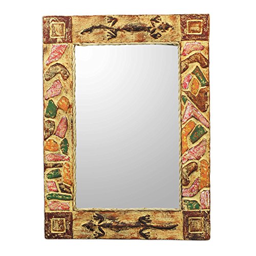NOVICA Rustic Wood Wall Mounted Mirror, Brown 'African Lizards'