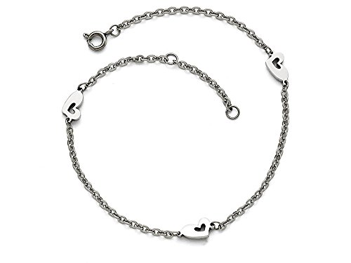 -. Title : Chisel Stainless Steel Polished Hearts with 1in Extension Anklet