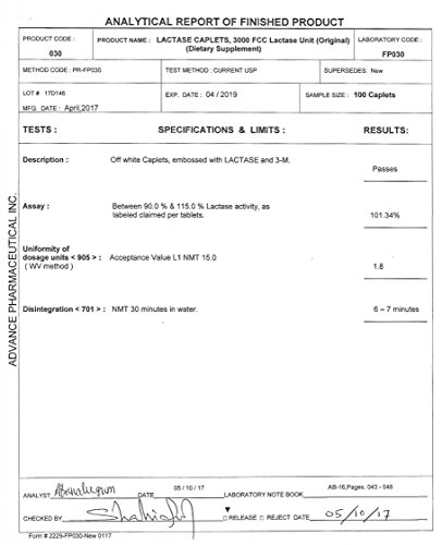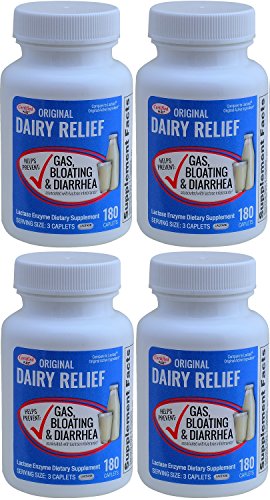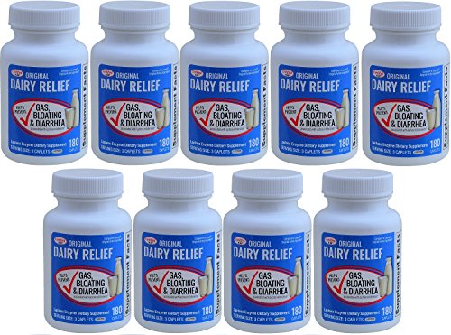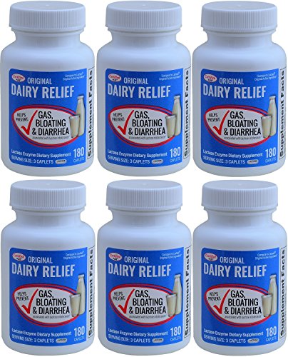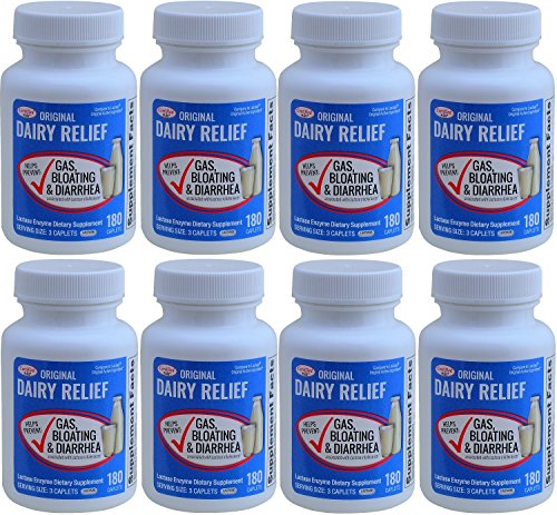 Count:180 Caplets per Bottle. Dairy Relief Generic for Lactaid Original has the same active ingredients as Lactaid Original for fraction of the cost. How it works: Dairy Relief Generic for Lactaid Original Supplements contain a natural lactase enzyme that your body may not produce enough of. It works naturally and in harmony with your body to help you digest dairy. This product is an enzyme supplement. Dairy Relief Generic for Lactaid Original used to help people who have trouble digesting milk and other dairy products (lactose intolerance). Lactose is a type of sugar found in milk products. Lactase enzyme is normally produced by the body to help break down (digest) lactose. Lactose intolerance occurs when the body produces low amounts of lactase enzyme. Lactose intolerance can begin at different ages. Infants are not usually affected, but lactose intolerance can affect children as young as 2. It is very common in adults. Taking Dairy Relief Generic for Lactaid Original lactase enzyme with milk products as directed can help prevent upset stomach, abdominal bloating/cramping, gas, and diarrhea caused by these products. The FDA has not reviewed this product for safety or effectiveness. How to use This Lactase Enzyme Generic for Lactaid Original Strength: Follow all directions on the product package.Feature