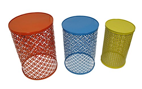 -. Title : Red, Blue and Yellow Decorative Round Metal Nesting Tables Set of 3