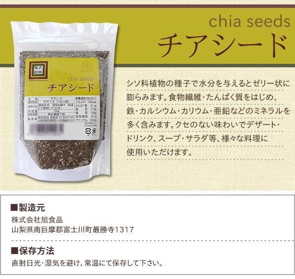 | シソ科植物の種子で水分を与えるとゼリー状に膨らみます。食物繊維・たんぱく質をはじめ、鉄・カルシウム・カリウム・亜鉛などのミネラルを多く含みます。クセのない味わいでデザート・ドリンク、スープ・サラダ等、様々な料理にご使用いただけます。 |