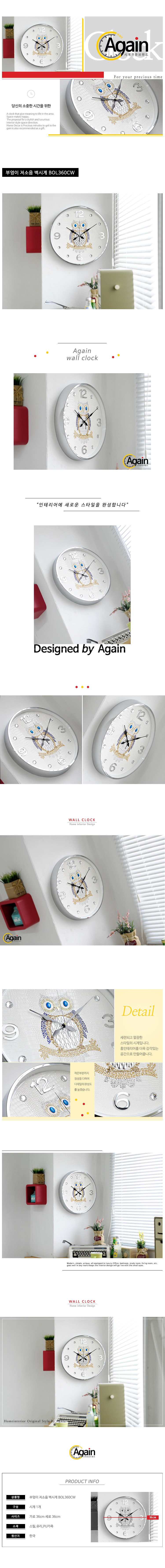 - 품명 및 모델명부엉이 저소음 벽시계 BOL360CW
