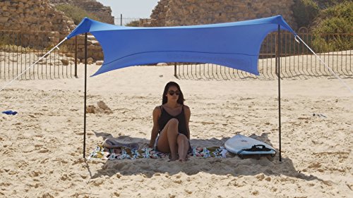HappySummer Beach Tent with sandbag anchors—the portable, lightweight, 100% lycra SunShelter with UV protection. The perfect SunShade canopy for the entire family.
