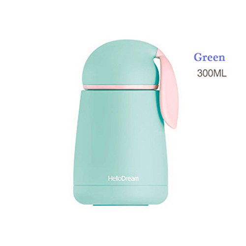 Mini Children's Thermos Cup Leak-proof 10 Oz 300ML Cute Rabbit Shape Stainless Steel Vacuum Insulated Travel Mug for Kids Green