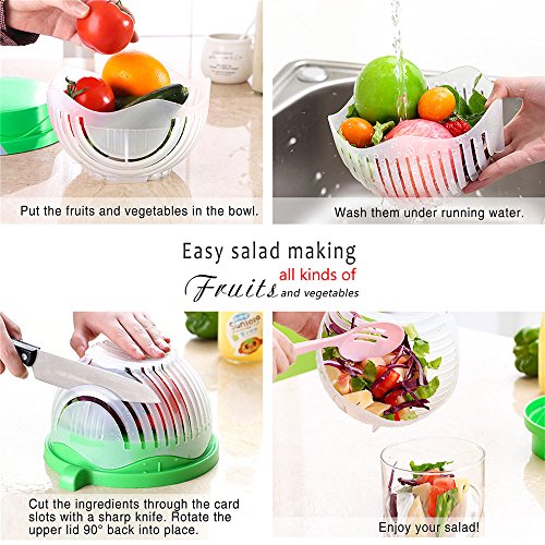 Salad Cutter Bowl, X-Chef 60 Second Salad Maker Easy Fruit Vegetable Chopper Slicer Strainer, BPA Free, New Design