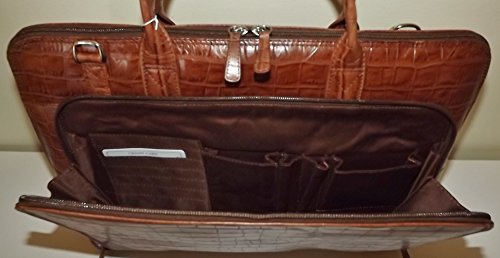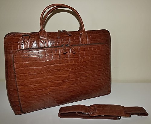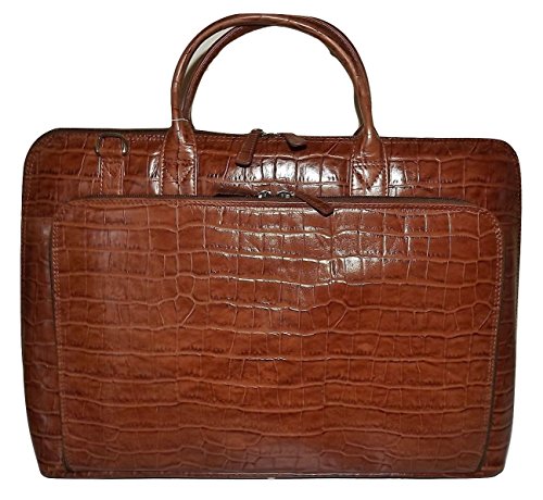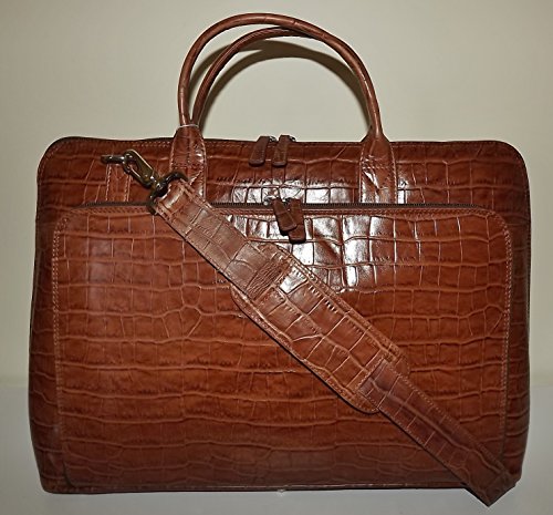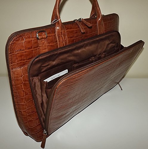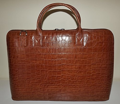 -. Binding : Electronics -. Brand : Leather Italia -. Color : Black -. EAN : 0680887363131 -. Feature : Crafted of top-grain croc embossed leather with large zip-around, gusseted opening providing easy access to the main compartment / Main compartment features a rear zip pocket and elastic slip pocket to accommodate up to a 14" laptop: computer pocket measures 12.0" wide x 10.0" high x 1.5" deep / Front zip compartment features an organizational panel with 2 pen slots, 6 credit card/business card slip pockets, and 2 phone or other electronic device slip pockets / Dual top leather handles and metal bottom feet stabilize bag while standing, racquet Coil zippers provide smooth zipper action and superior burst strength / Includes a removable, adjustable leather shoulder strap for convenient over-the shoulder carrying; maximum drop of 26.0" (66cm) - Overall Dimensions: 12.0"h x 17.0"w x 4.0"d (30.5cm x 43cm x 10cm) -. HazardousMaterialType : Unknown -. Label : Italia Leather -. Manufacturer : Italia Leather -. Model : 3631 CNC -. MPN : 3631 CNC -. PackageQuantity : 1 -. PartNumber : 3631 CNC -. ProductGroup : PC Accessory -. ProductTypeName : CARRYING_CASE_OR_BAG -. Publisher : Italia Leather -. Studio : Italia Leather -. Title : Italia Leather Women's Croc Embossed Laptop Brief Bag with Shoulder Strap Cognac -. UPC : 680887363131