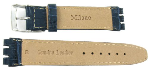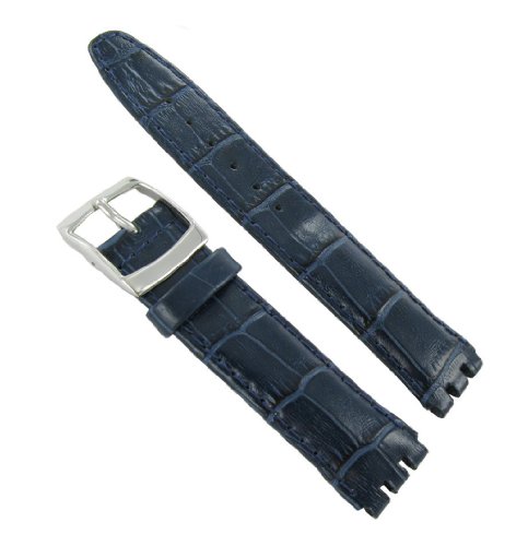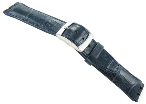 -. Title : 19mm Genuine Leather Alligator Grain Padded Navy Blue Watch Band Fits Swatch