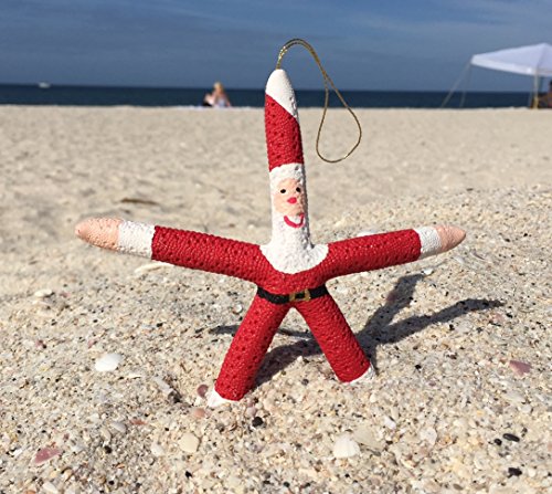 Natural Starfish Santa Ornament – Perfect for Beach Christmas Tree – Sea Shell Holiday Beach Decor