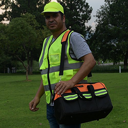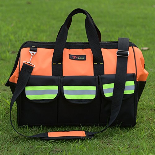 - ✔KEEP YOU SAFE AT NIGHT OR DARK , This tool bag was added 1.5inch bright yellow fabric stripe, and 0.6inch reflective stripe at both side of the tool bag, it makes you bright at night, you can be seen 1000 feets away in the traffic. Zojo care about our valued customers. Zojo keep working on the upgrade of products.