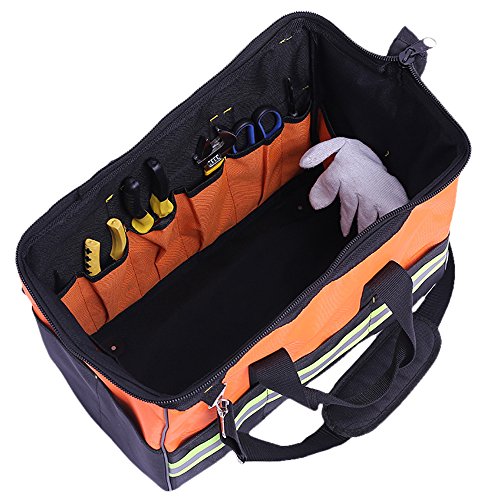 ZOJO Reflective Tool Bags For Men 16 inch Wide Mouth (Large, Orange)