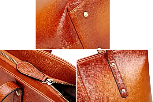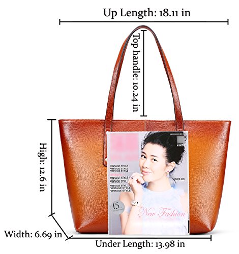 AINIMOER Women's Vintage Leather Tote Bag Handbags Shoulder Bags Top-handle Large Purse for Ladies