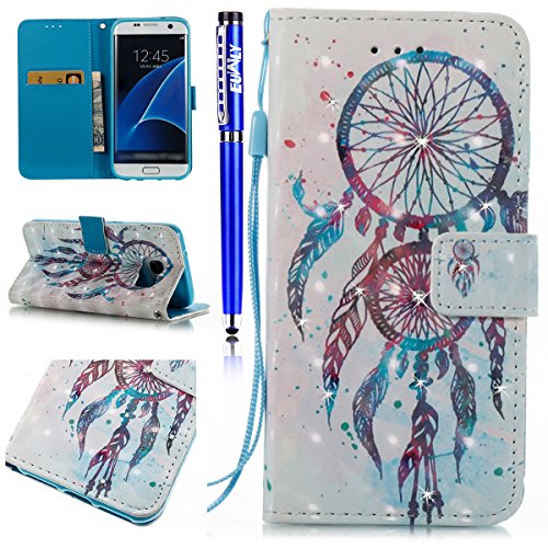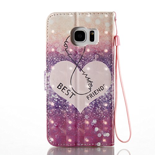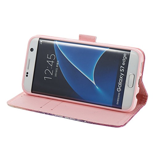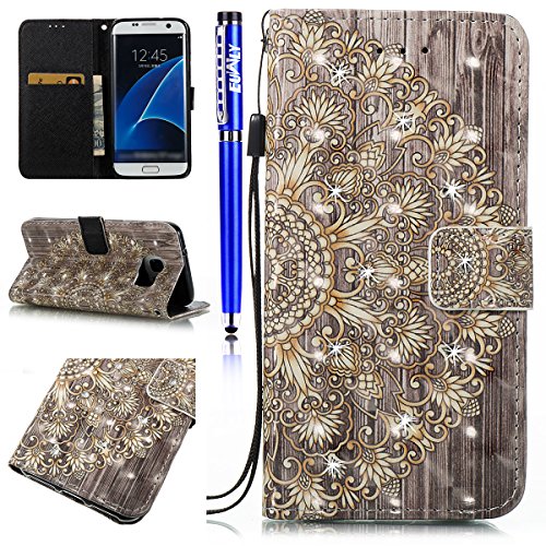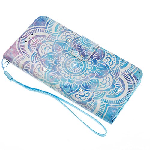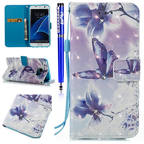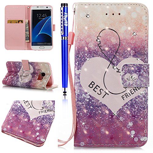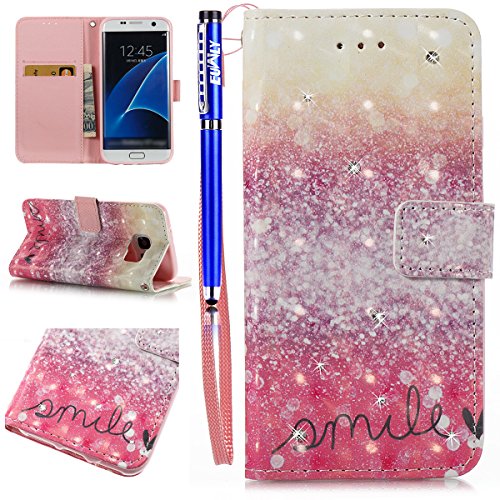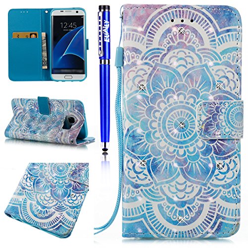 FESELE EUWLY Lederhulle fur [Samsung Galaxy S7 Edge], Diamant Bling Strass Hulle Luxus Bling Bunte Ledertasche Handytasche Flip Case Cover Samsung Galaxy S7 Edge Lanyard Strap Glitzer Gla