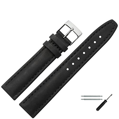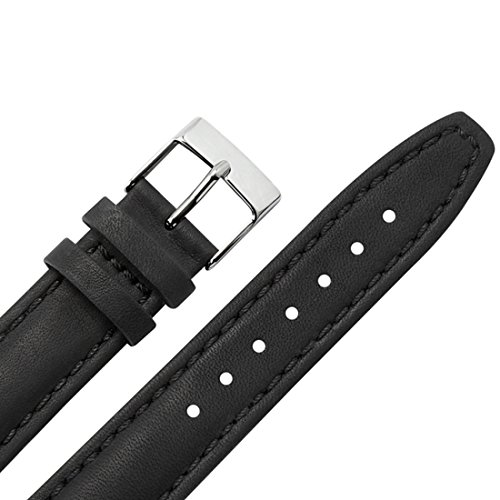 DESIGN - klassisches Ersatzband aus Rindsleder fur Uhren in der Farbe Schwarz | Lederband mit leichter Polsterung | traditionelles Uhrenband mit Naht in angeglichener Farbe des Uhrbandes | wunderbar passend zu sportlichen & klassischen Uhrenmodellen | geringe Farbabweichungen konnen aufgrund naturlicher Eigenschaften des Lederbandes oder wegen der Darstellung am Monitor auftreten