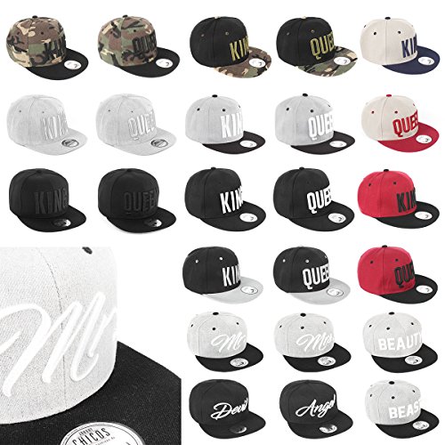 Fur unsere Verliebten und beste Freunde: Coole Cap KING, QUEEN, MR., MRS., DEVIL, ANGEL, BEAUTY, BEAST Snapbacks mit hochwertigem 3D Stick auf der Vorderseite.