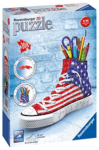 Studio : Ravensburger Publisher : Ravensburger Binding : Toy Product Description Assemble your very own, super-cute pencil holder with this 2-in-1 plastic puzzle craft! find and snap together the sturdy, numbered (on the inside) pieces, to create the perfect place to store pencils, markers and special treasures. Featuring a gorgeous American flag design, this 108-piece premium puzzle features easy click technology and measures 8.5" x 3" x 5". 0