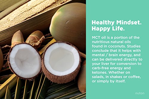 Nuton's mindfully formulated MCT Oil delivers the healthy fats that readily convert into energy to enhance brain power and increase levels of active energy. ? No Lauric acid means more ketones and cleaner conversion of fatty acids to fuel