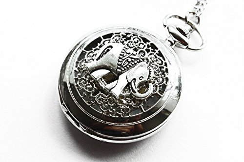 -. Title : Vintage Silver Luck Elephant Pocket Watch with Chain