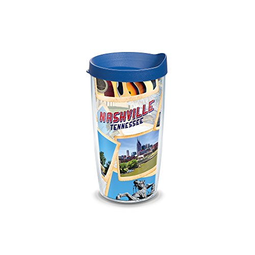Tervis Nashville Collage Wrap 16oz Tumbler with Blue Lid, Clear