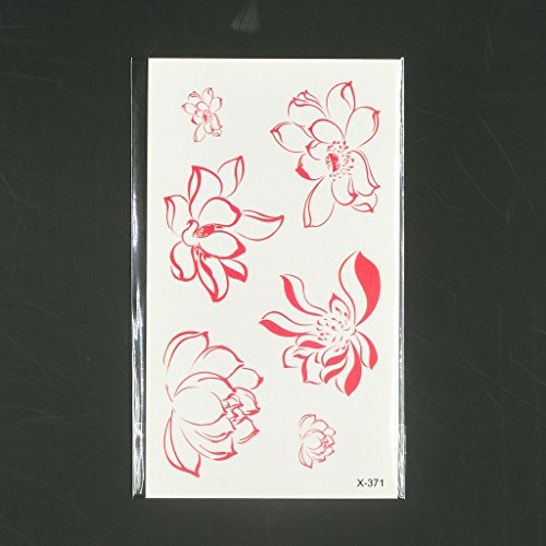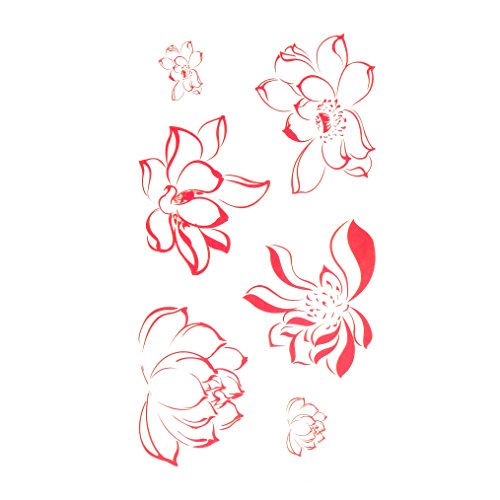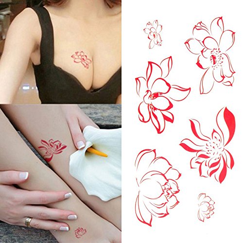 Oottati Small Cute Temporary Tattoo Red Lotus Hand (Set of 2)