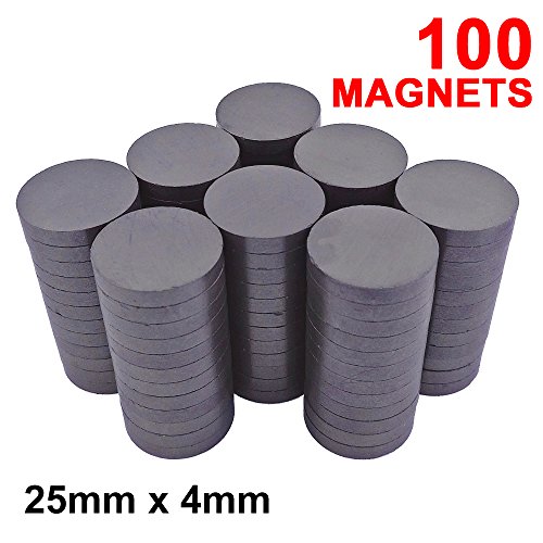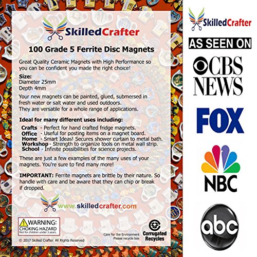 Skilled Crafter Strong Craft Magnets 1 inch. 25mm/4mm Ferrite Disc Magnet. 100 Pieces for Best Value. Ceramic Grade 5 Strength. Ideal for Fridge, Whiteboard, Industrial, Scientific & Home