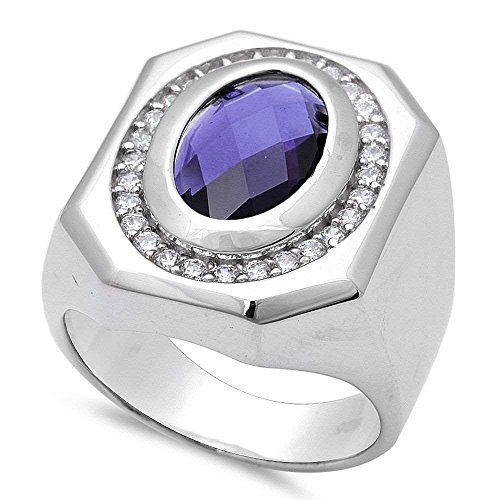 -. Title : Men Simulated Tanzanite Oval & Cubic Zirconia .925 Sterling Silver Ring Sizes 8-11