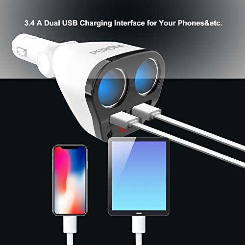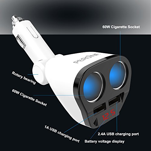 -. Title : Peroine 2 Sockets 12V/24V Cigarette Lighter Splitter, 3.4A Dual USB Car Charger Adapter with Voltage Display