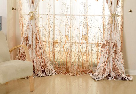 Thin polyeste fabric. Can see sillouettes through the curtain. For other tree branch choice: http://www.amazon.com/s/ref=bl_sr_home-garden?ie=UTF8&field-brandtextbin=Elleweideco&node=1055398