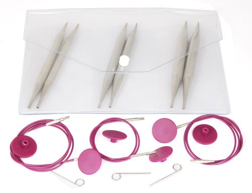 -. Feature : Nadelspitzen in Aufbewahrungstasche mit Zubehör / Inhalt: 3 Paar Nadelspitzen in 9,0/10,0/12,0mm, 3 Nadelseile für 60, 80, 100cm lange Rundstricknadeln / Material: Metall / enthaltenes Zubehör: 6 Endkappen für die Nadelseile und 3 Schlüssel zum Befestigen der Seile an den Nadelspitzen