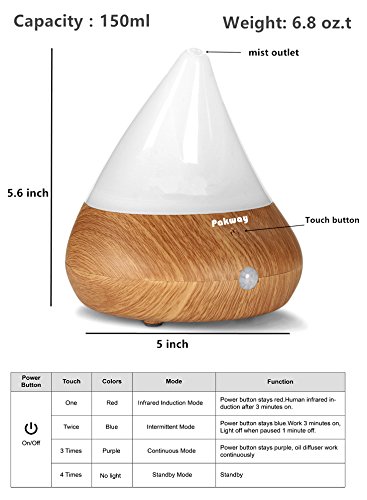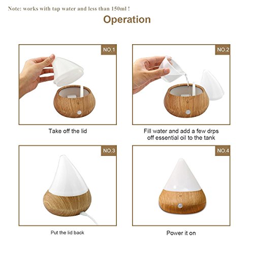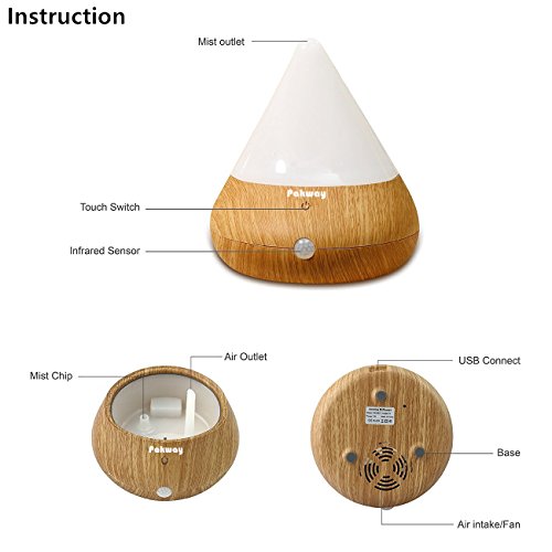 Built-in Infrared sensors, stop working automatic when it senses nobody use it. It uses ultrasonic vibrating waves to create a soothing, scented mist.Works with ordinary tap water, plus 2 to 3 drops of essential oil.Ultrasonic vapor technology - no heat or flames. Provides pleasant aromas(not included) mist to create a calm, relaxing environment anywhere.