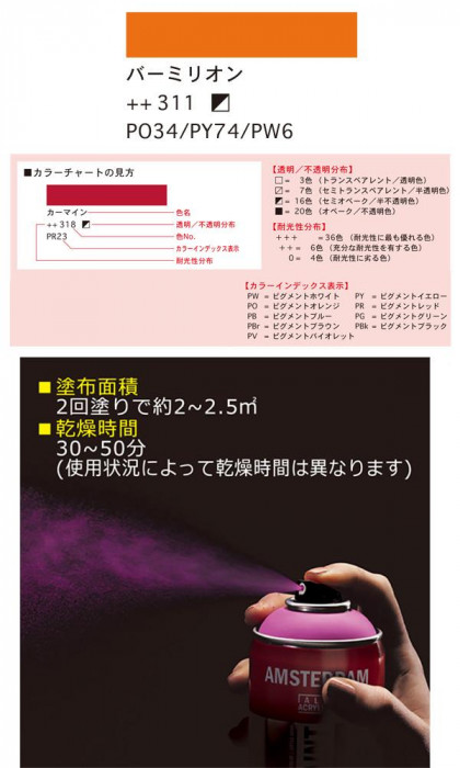 | 仕様 | 水性 色No.311 火気・高温注意 高圧ガス:DME |
