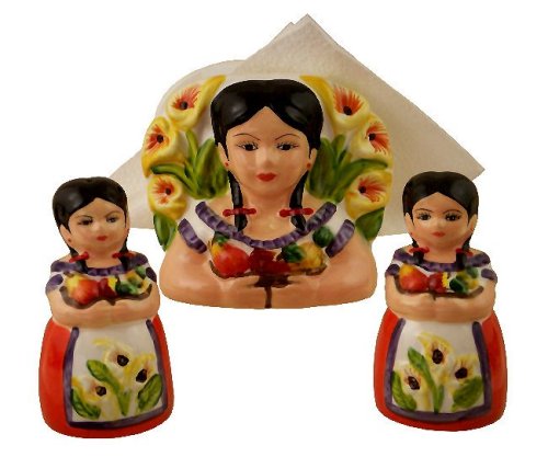 Country Calla Lilly Flower Salt, Pepper Shakers Napkin Holder