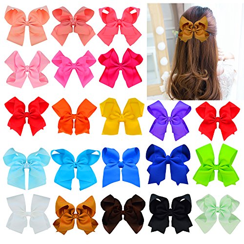 20pcs Big Bow Hair Clips, Jmkcoz 6" Hair Bows Hair Pins Barrettes Grosgrain Ribbon Large Boutique Hair bows Alligator Clips for Girls Women Multi-color...