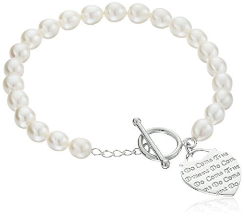 -. Title : Sterling Silver 6-7mm White Baroque Freshwater Cultured Pearl Heart Charm Toggle Bracelet