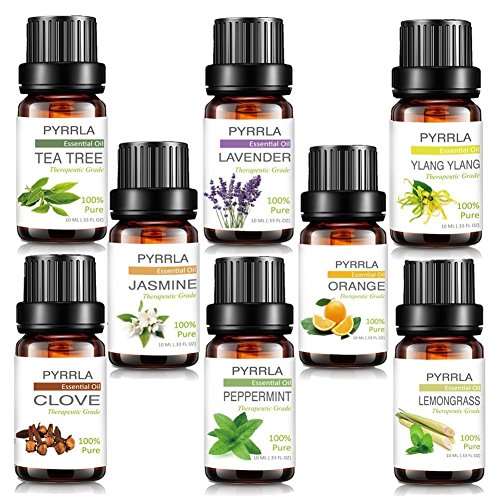- Perfect Essential Oils Set that contains 8 most popular aromatherapy oils:Jasmine,Lavender,Ylang Ylang,Tea Tree,Clove,Lemongrass,Peppermint,Orange