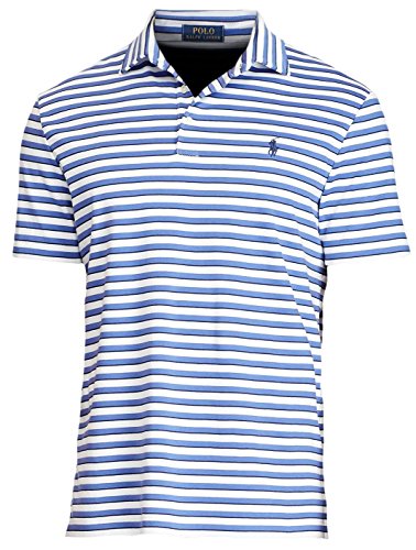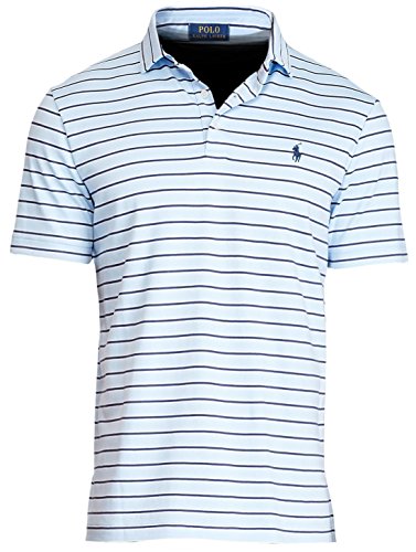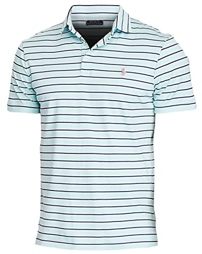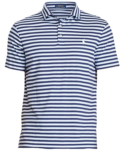 Polo Ralph Lauren Classic Fit Soft Touch Short Sleeve Striped Men's Polo Shirt (Large, Observer Blue)