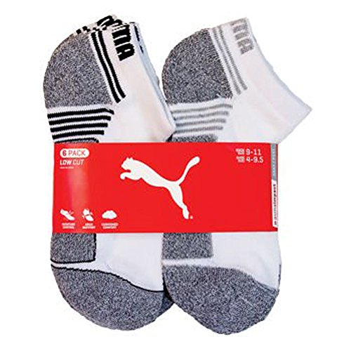 -. Title : Puma Socks All Sport Cushioned Low Cut - 6 Pack Shoe Size 4 - 9.5 (White/Grey)
