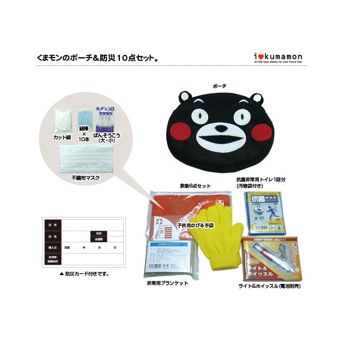 원본상품명: 送料無料!くまモンのポ?チ&防災10点セット KU-614■防災用品 災害時 非常用品 防災セット 防災リュック