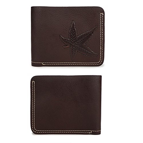 -. Feature : Imported Material --- Made of High Quality Genuine Cowhide Leather, Durable, Wear-resisting, Smooth, Ultra Slim and Lightweight / Multi Functions --- 1 x Cash Compartment, Multi Card Slots to Hold More Than 8 Cards. It is a wallet that can meet your everyday needs, convenient to hold your cash, bills, coins, cards, and so on. / Unique Design --- 1.Vintage BIFOLD Design, Making you Outstanding in Crowd; 2.LARGE CAPACITY to Hold your Necessities; 3.Easy Access to Cash, Credit Cards or Other Necessities When Needed / Special Pattern --- 3D Leaf Embossed Pattern, Making you Outstanding in Crowd, Ideal Gift for Yourself, your Family and Friends / Package --- It contains a stylish wallet and a exquisite GIFT BAG, which is of good quality. Please kindly don't throw the bag away when receiving the package, since you can still use it to hold your jewelry or other important small things.