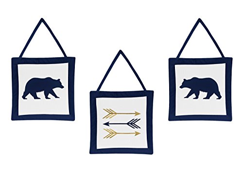 Sweet Jojo Designs 3-Piece Navy Blue, Gold, and White Wall Hanging Decor for Big Bear Collection