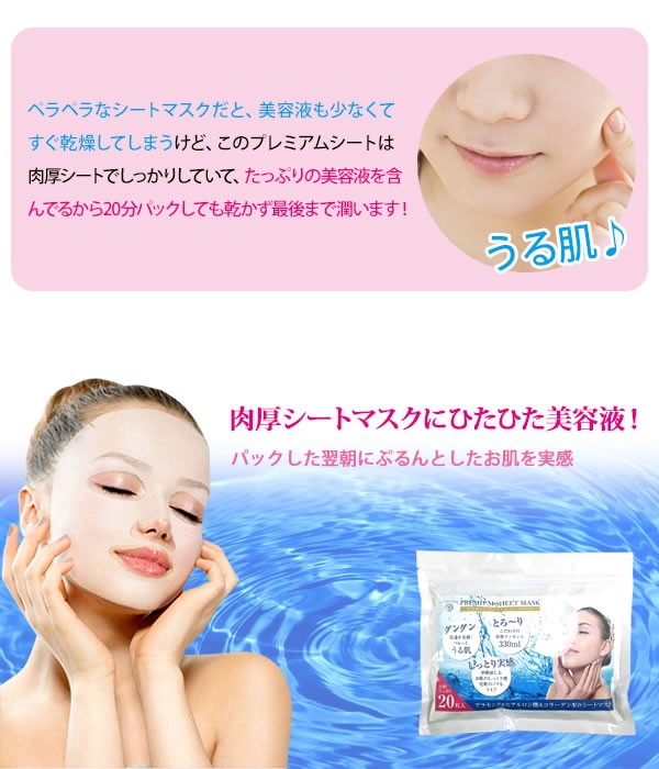 | <h1>プラセンタ、ヒアルロン酸、コラーゲンの3種の美容成分と9種の天然エキスが潤いとハリのある健康的な素肌へと導きます。 極厚シートでしっかり密着・保湿します。フェイスパック/フェイスマスク/マスクシート/シートパック/スキンケア/フェイスケア/うるおい/潤う/保湿ケア/弾力/湿潤/モイスト/美容液/化粧水/しっとり/お得</h1> |
