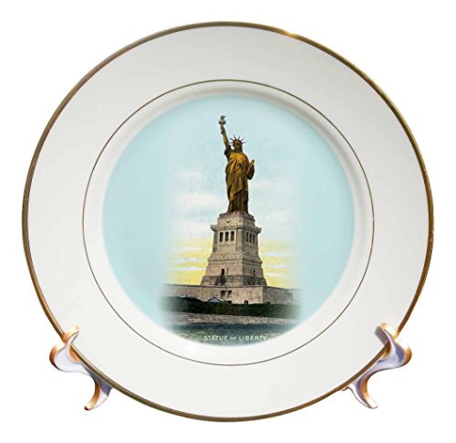 3dRose cp_170123_1 Vintage Image of the Statue of Liberty in New York Harbor Porcelain Plate, 8"